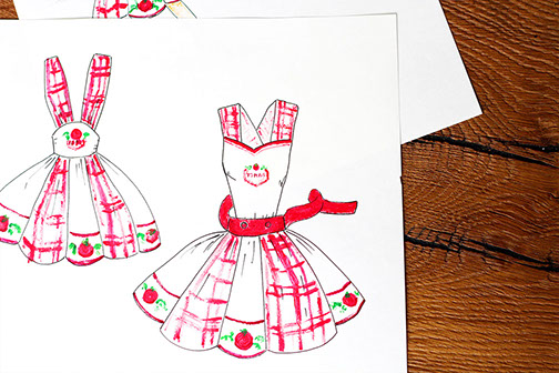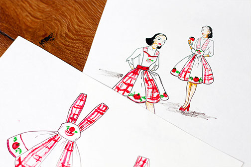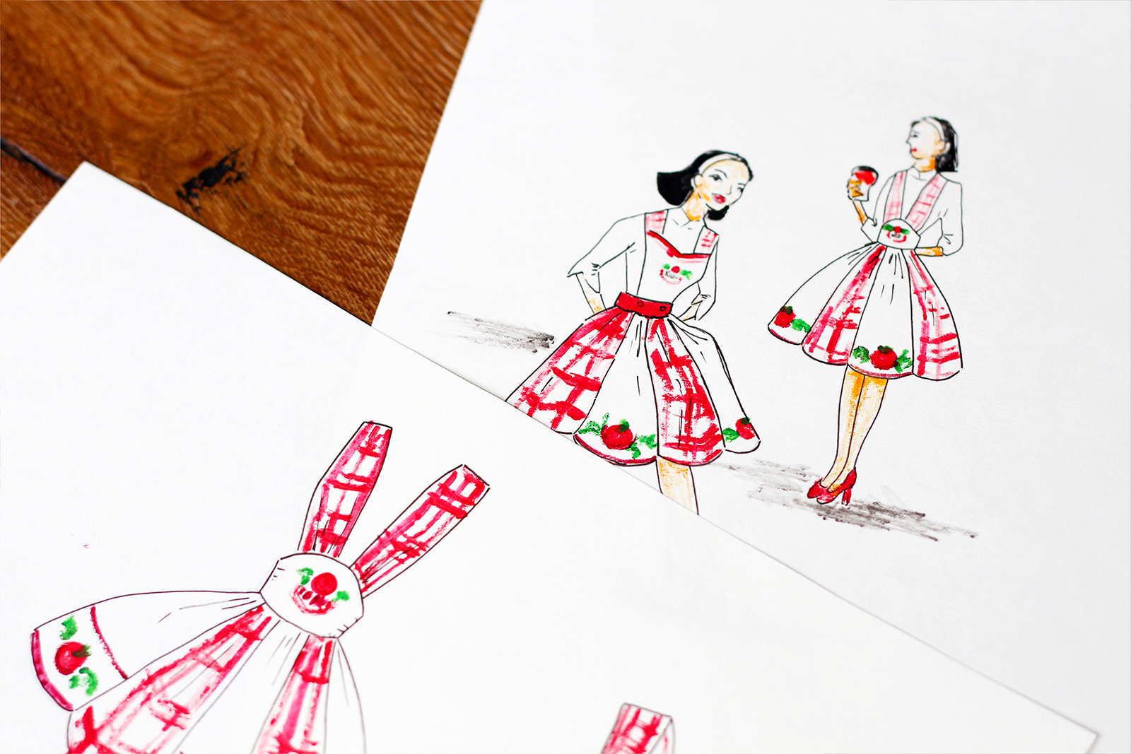 L’idea della divisa per le promotrici nasce dall’antica tradizione italiana di portare il grembiule in cucina. Il modello è ispirato ai grembiuli italiani degli anni ‘70 quando non solo fungevano da protezione per i vestiti, ma anche come accessorio di bellezza.